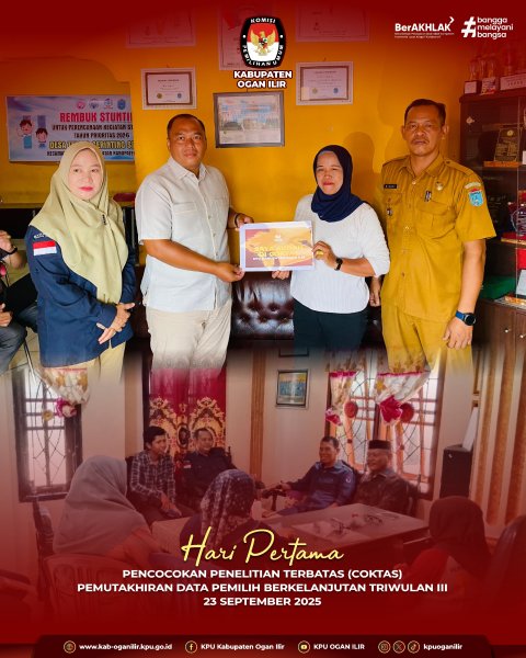 Ketua KPU Kabupaten Ogan Ilir Roby Ardiansyah dan Anggota Yahya beserta Kasubbag Perencanaan Data dan Informasi Siti Sarah melaksanakan kegiatan Pencocokan dan Penelitian Terbatas (COKTAS) Pemutakhiran Data Pemilih Berkelanjutan Triwulan III tahun 2025.