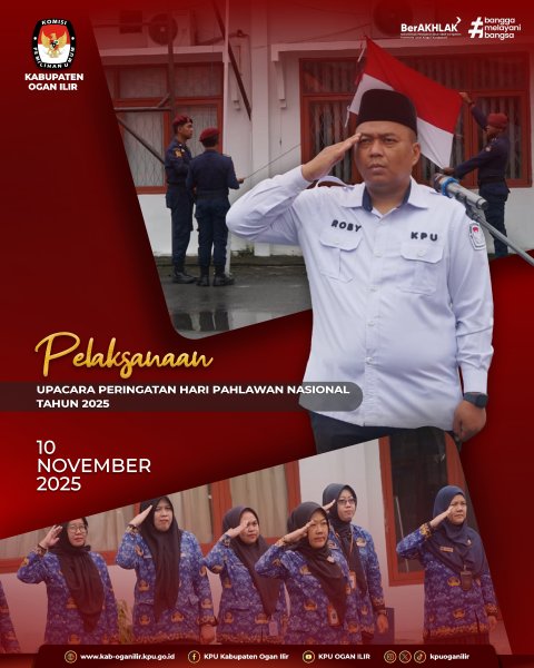 KPU Kabupaten Ogan ilir melaksanakan kegiatan Upacara Peringatan Hari Pahlawan Nasional 10 November 2025 dengan tema ""Pahlawanku Teladanku Terus Bergerak, Melanjutkan Perjuangan”.