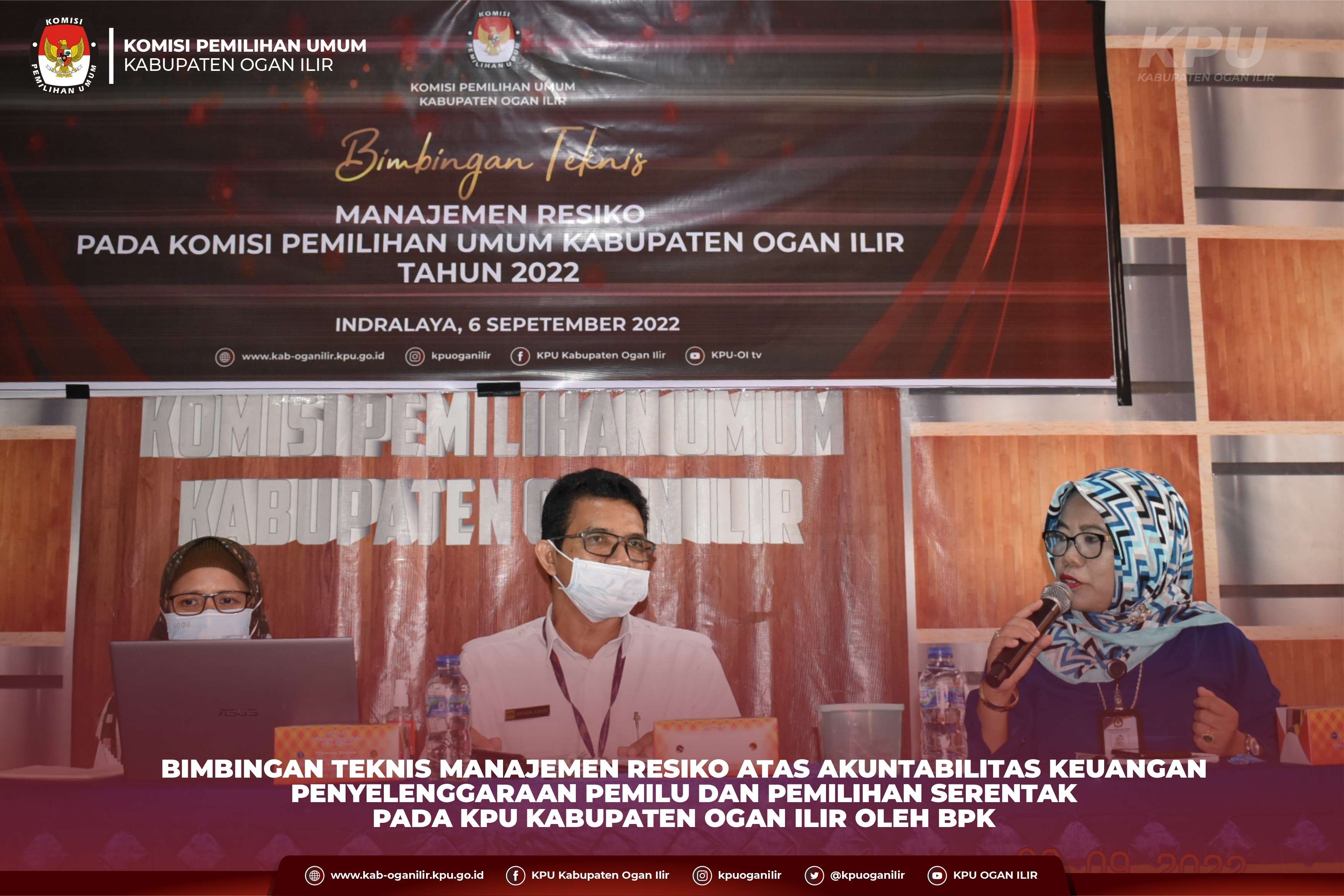 Mengikuti kegiatan Bimbingan Teknis Manajemen Resiko atas Akuntabilitas Keuangan Penyelenggaraan Pemilu dan Pemilihan Serentak pada Komisi Pemilihan Umum Kabupaten Ogan Ilir oleh Badan Pengawasan Keuangan dan Pembangunan (BPKP) Provinsi Sumatera Selatan.