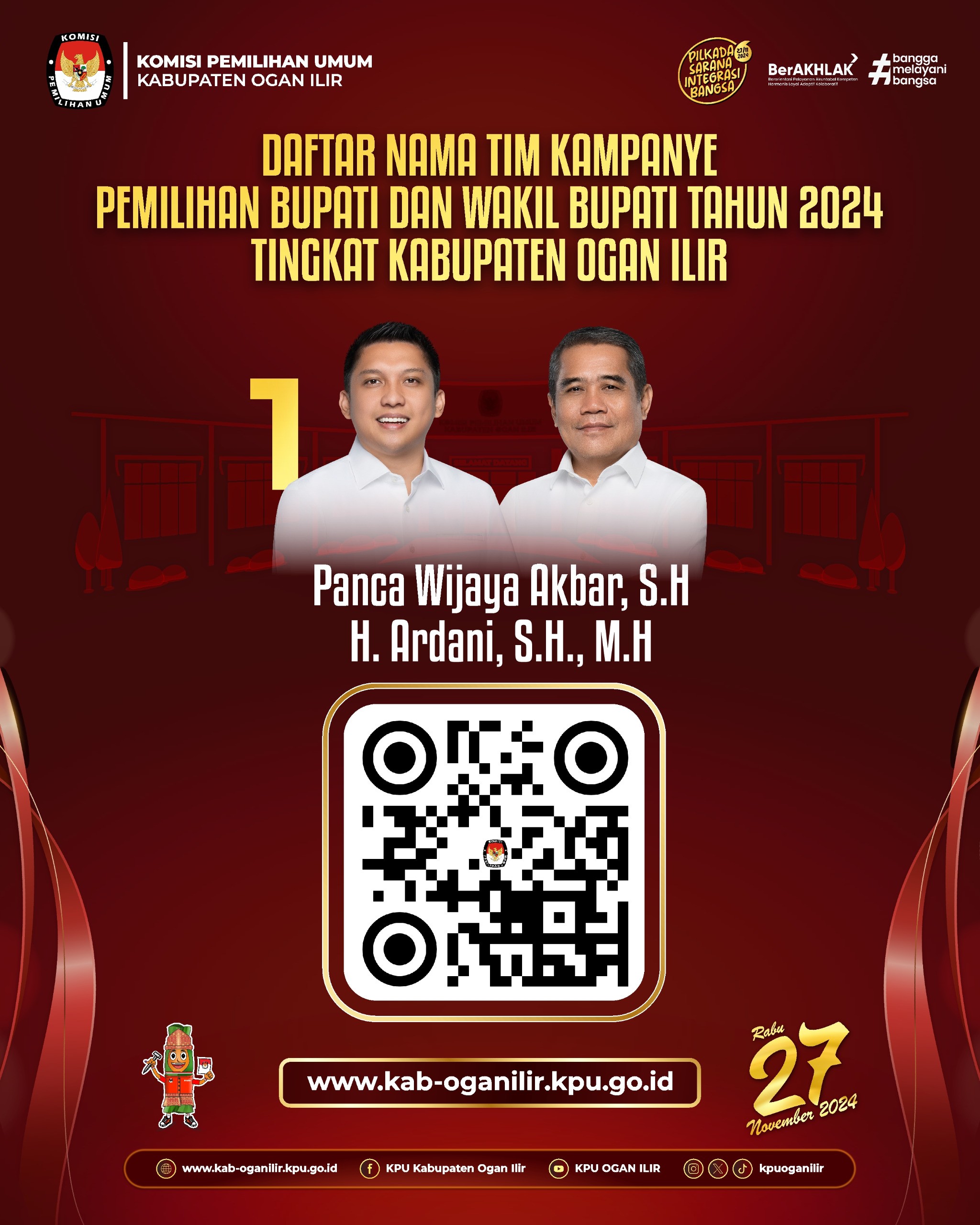 Daftar Nama Tim Kampanye Pemilihan Bupati dan Wakil Bupati Kabupaten Ogan Ilir Tahun 2024