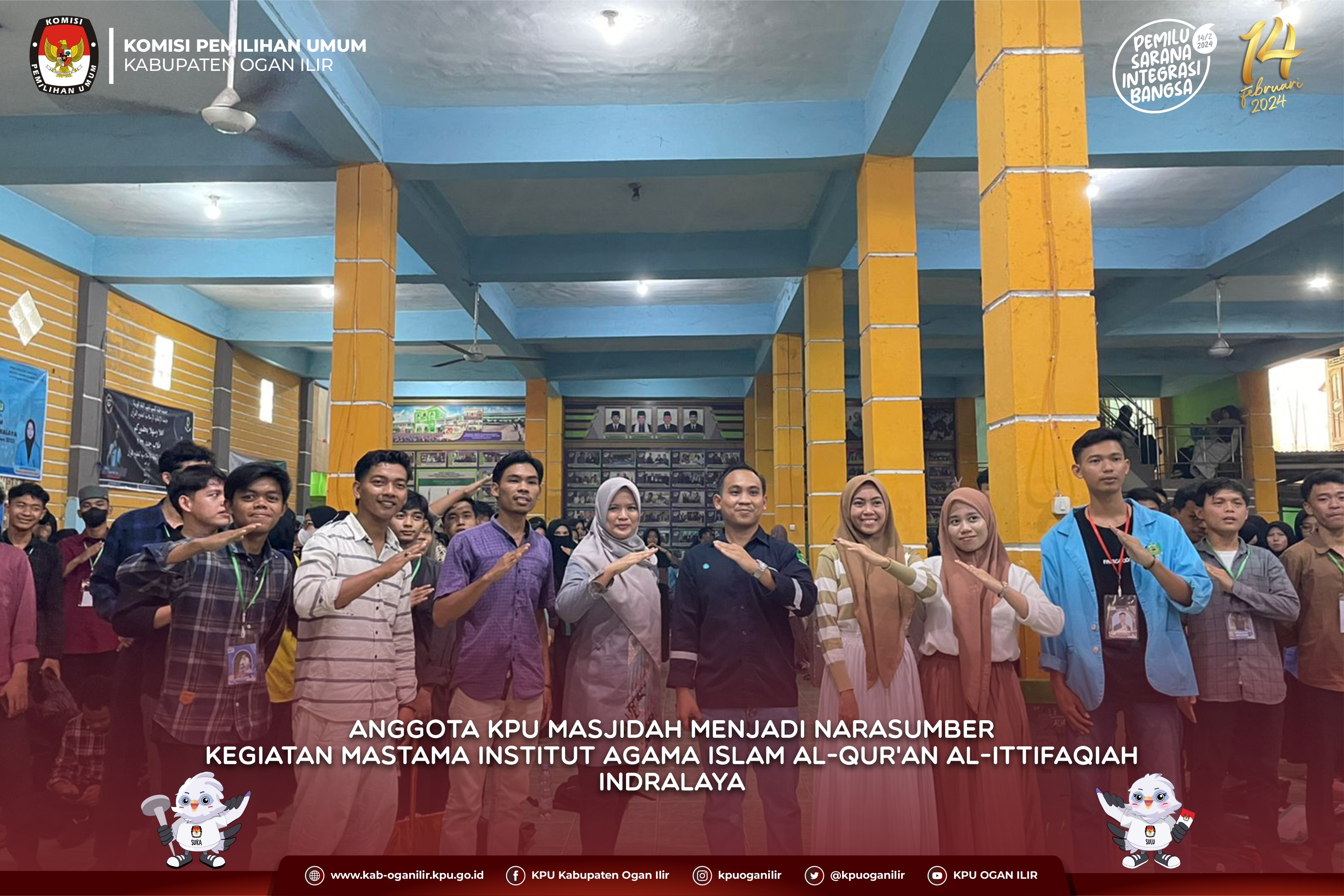 Anggota KPU Kabupaten Ogan Ilir Masjidah menghadiri undangan sebagai narasumber kegiatan Masa Ta'aruf Mahasiswa (MASTAMA) Institut Agama Islam Al-Qur'an Al-Ittifaqiah Indralaya (IAIQI) dengan tema "Membentuk Mahasiswa IAIQI yang Berkarakter "APIK" Adaptif, Produktif, Inovatif dan Kompetitif Untuk Mewujudkan Generasi Mahasiswa IAIQI yang Unggul"