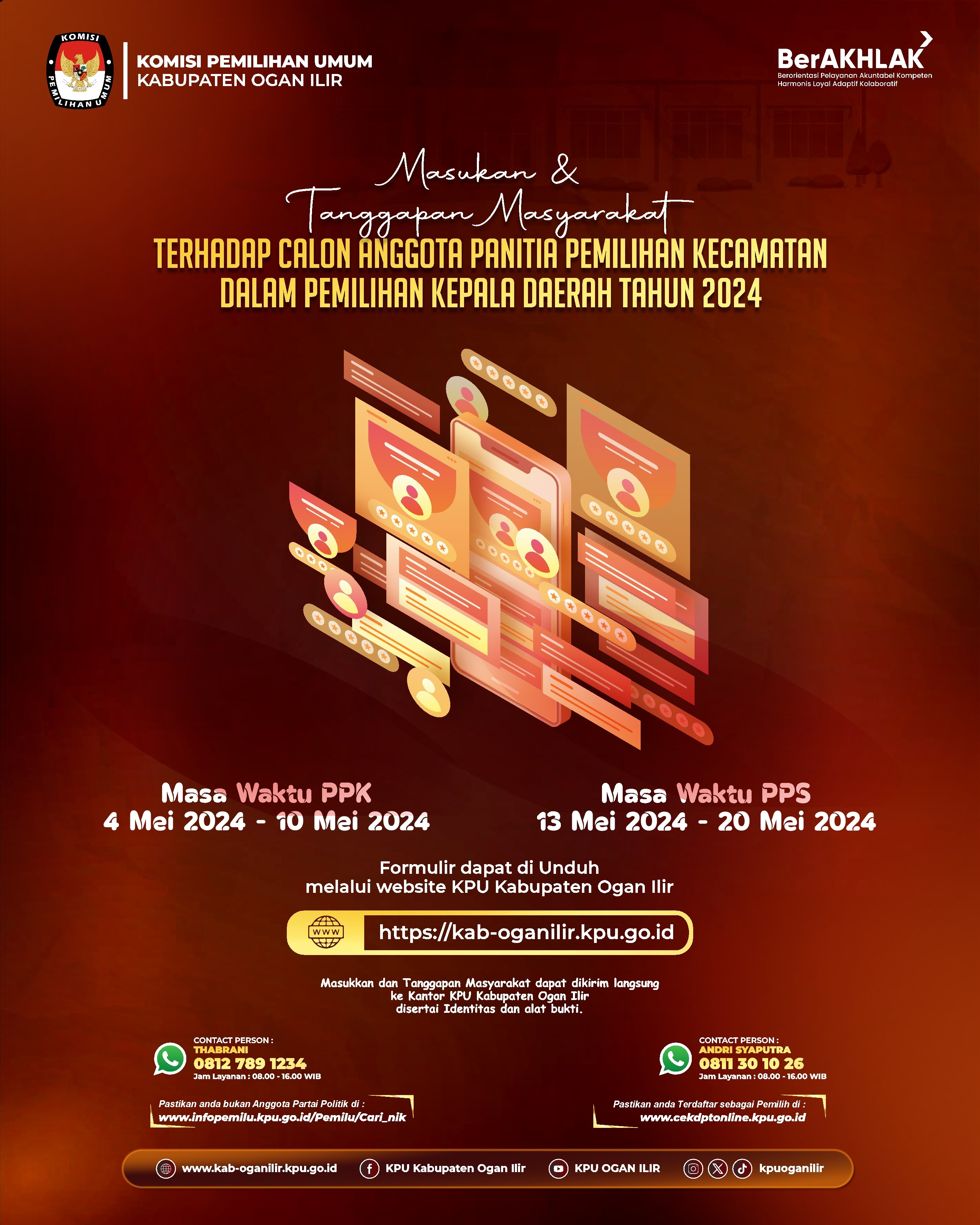 Masukan dan Tanggapan Masyarakat atas Calon Anggota PPPK dan PPS dalam Pemilihan Kepala Daerah Tahun 2024.
