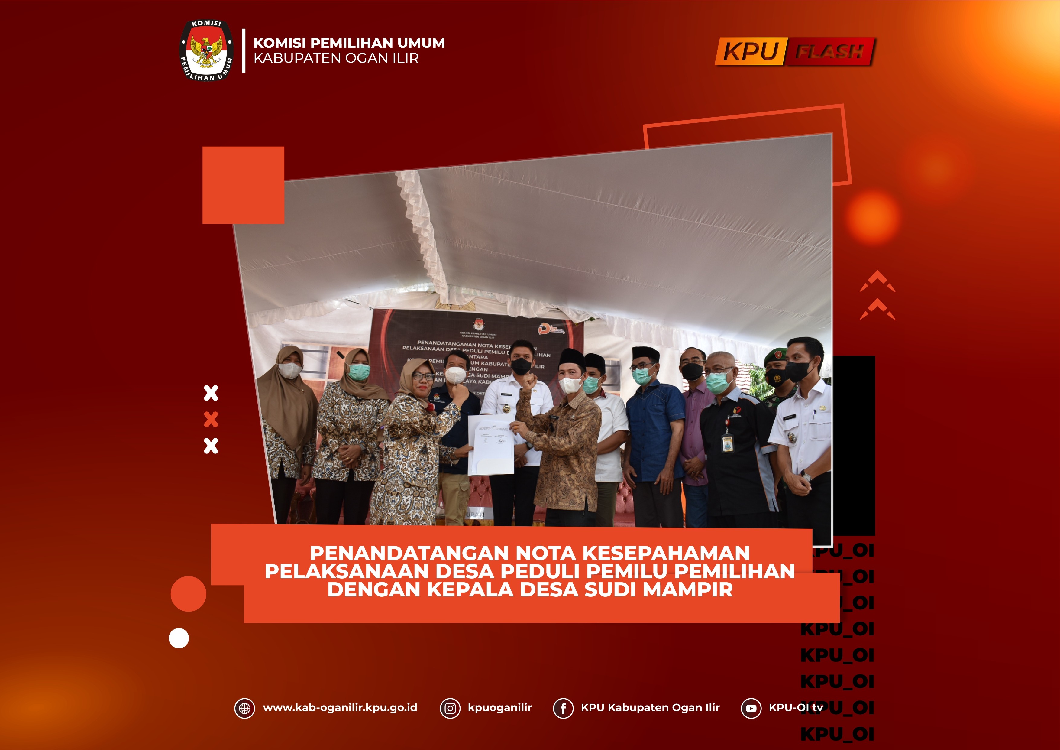 Komisi Pemilihan Umum (KPU) Kabupaten Ogan Ilir melaksanakan Penandatanganan Nota Kesepahaman Pelaksanaan Desa Peduli Pemilu dan Pemilihan dengan Kepala Desa Sudi Mampir Kecamatan Indralaya.