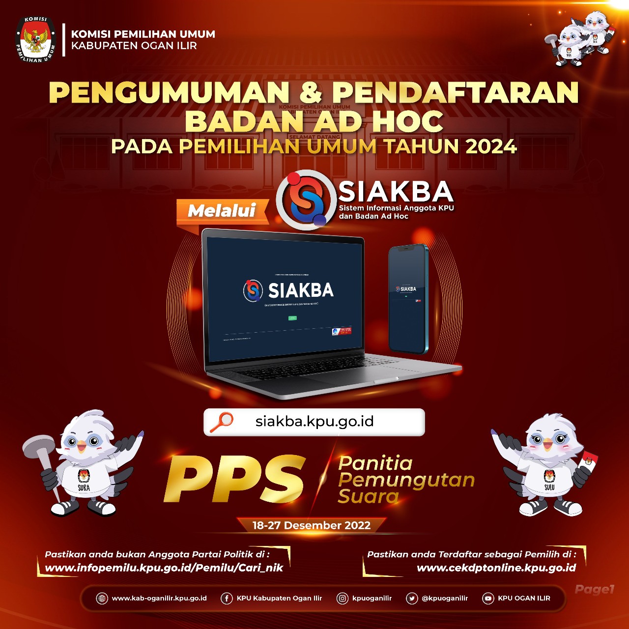 Komisi Pemilihan Umum Kabupaten Ogan Ilir dengan ini memanggil putra-putri terbaik Kabupaten Ogan Ilir untuk turut serta menjadi bagian Penyelenggara Pemilu sebagai Panitia Pemungutan Suara (PPS) dalam Pemilihan Umum Tahun 2024.