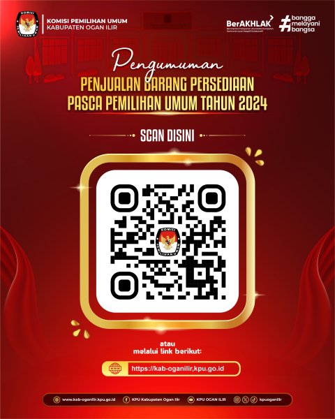 Komisi Pemilihan Umum Kabupaten Ogan Ilir dengan perantara Kantor Pelayanan Kekayaan Negara dan Lelang (KPKNL) Palembang akan melakukan penjualan umum (Lelang) Terhadap Barang Milik Negara.