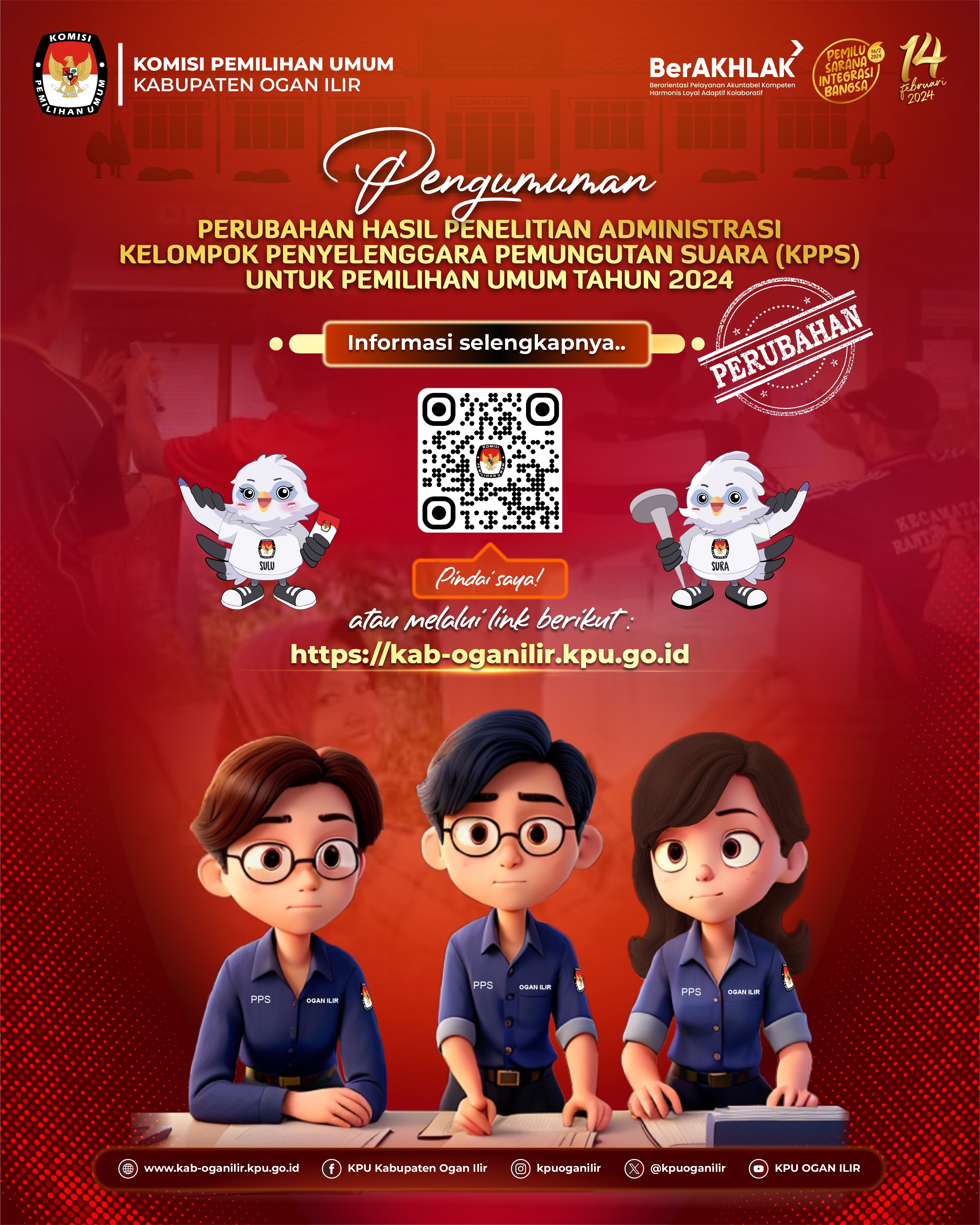 Pengumuman Perubahan Hasil Seleksi Administrasi KPPS untuk Pemilu Tahun 2024 se-Kabupaten Ogan Ilir