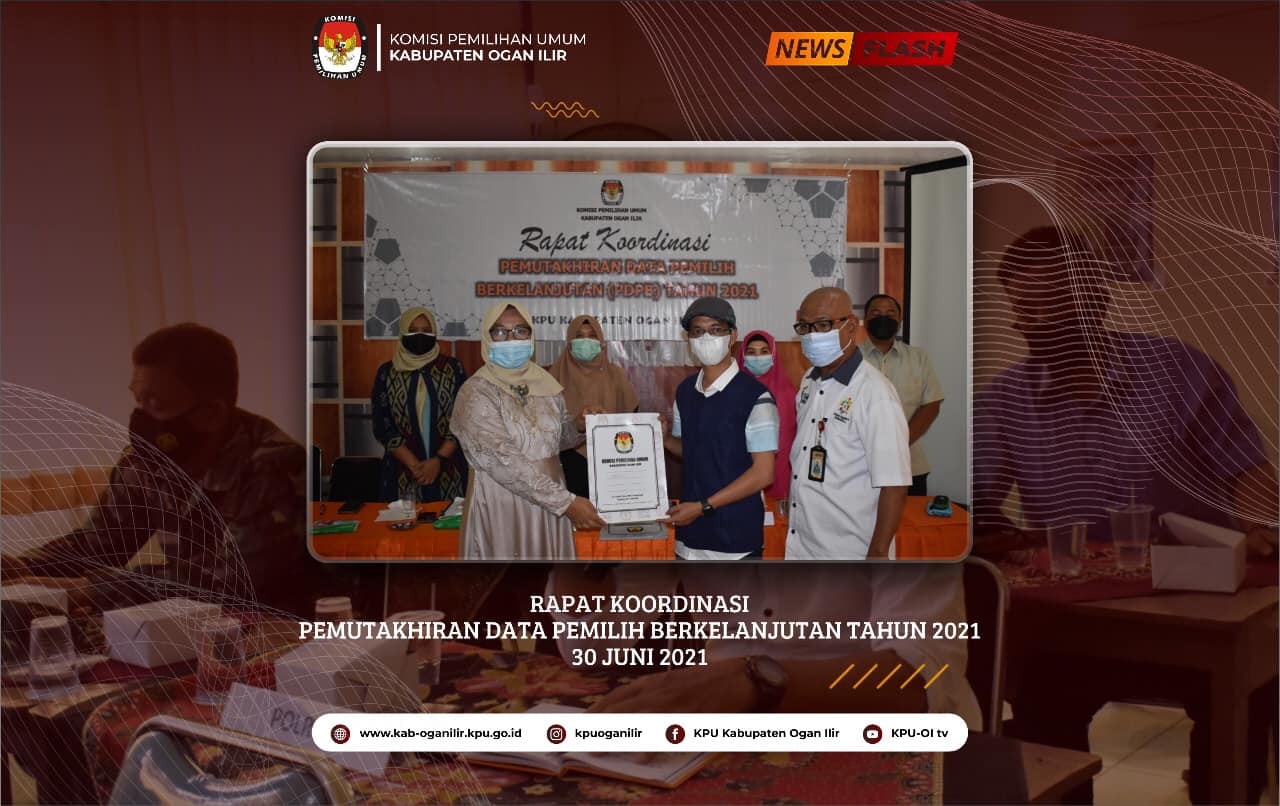Komisi Pemilihan Umum (KPU) Kabupaten Ogan Ilir melaksanakan Rapat Koordinasi Pemutakhiran Daftar Pemilih Berkelanjutan Triwulan II Tahun 2021 dengan mengundang dari pihak Bawaslu, Dinas Dukcapil, Polres, Dandim 0402 OKI/OI, Kementrian Agama dan Dinas Pemberdayaan Masyarakat dan Desa.
