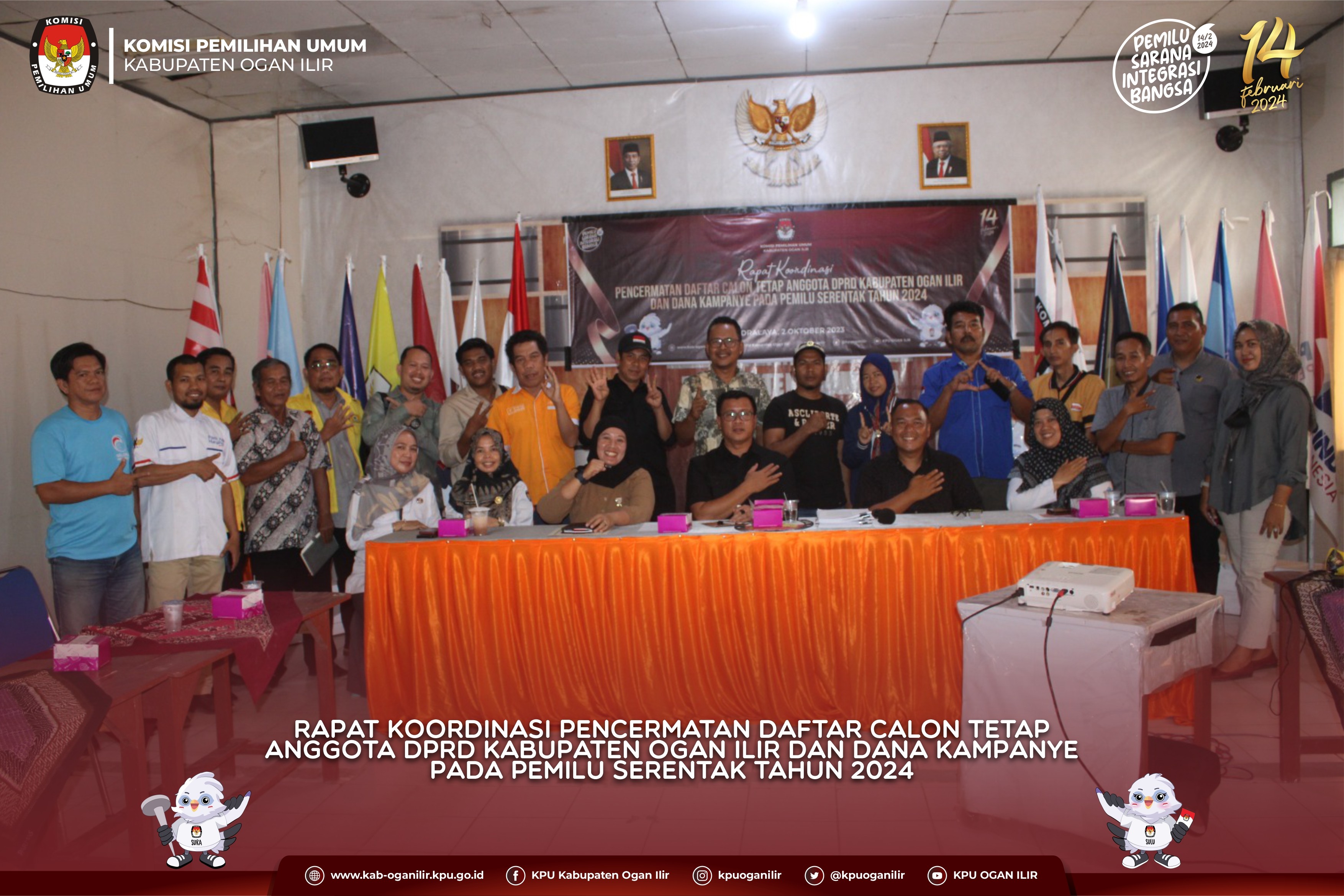 Rapat Koordinasi Pencermatan Daftar Calon Tetap (DCT) Anggota DPRD Kabupaten Ogan Ilir dan Dana Kampanye Pada Pemilu Serentak Tahun 2024
