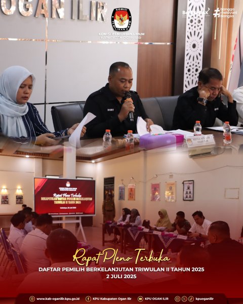 di ruang Kelas Demokrasi KPU Kabupaten Ogan Ilir, melaksanakan Rapat Pleno Terbuka Daftar Pemilih Berkelanjutan Triwulan II Tahun 2025.