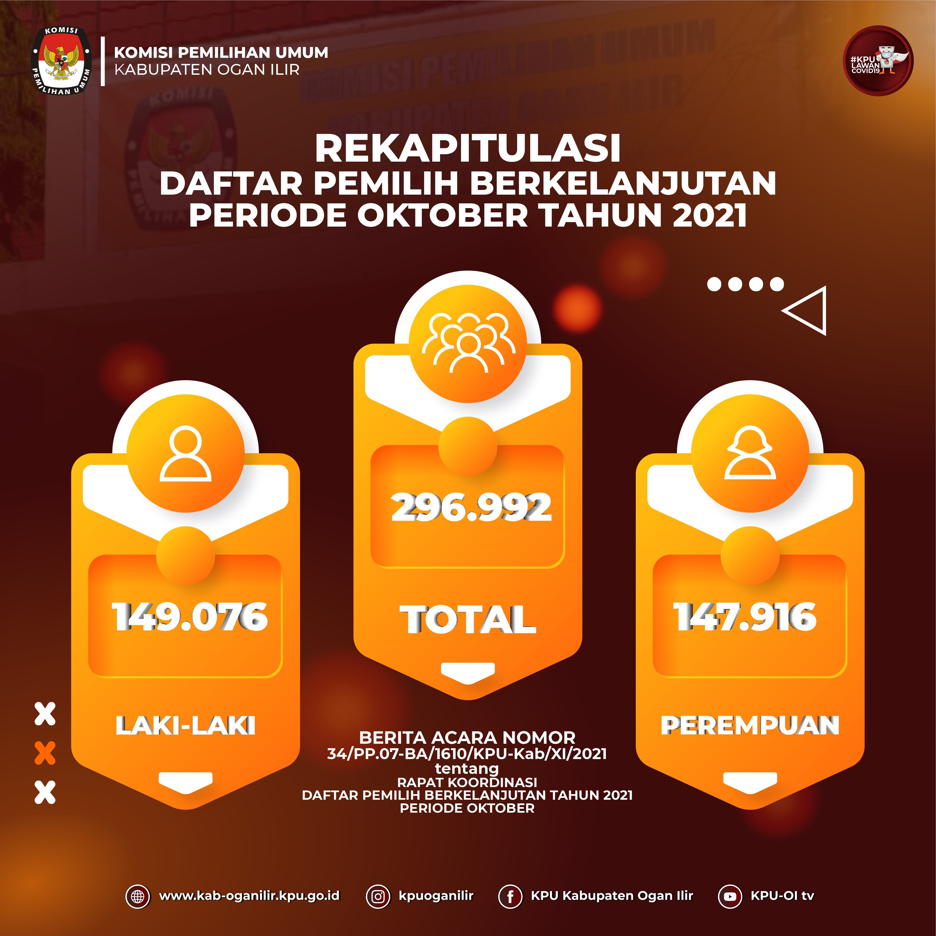 Yang tertuang dalam Berita Acara Komisi Pemilihan Umum (KPU) Kabupaten Ogan Ilir Nomor 34 Tahun 2021 tentang Rapat Koordinasi Daftar Pemilih Berkelanjutan Tahun 2021 Periode November.
