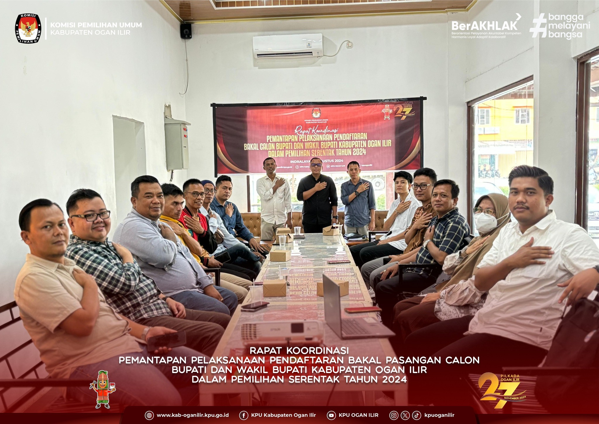 KPU Kabupaten Ogan Ilir melaksanakan Rapat Koordinasi Pemantapan Pelaksanaan Pendaftaran Bakal Pasangan Calon Bupati dan Wakil Bupati Kabupaten Ogan Ilir dalam Pemilihan Serentak Tahun 2024.
