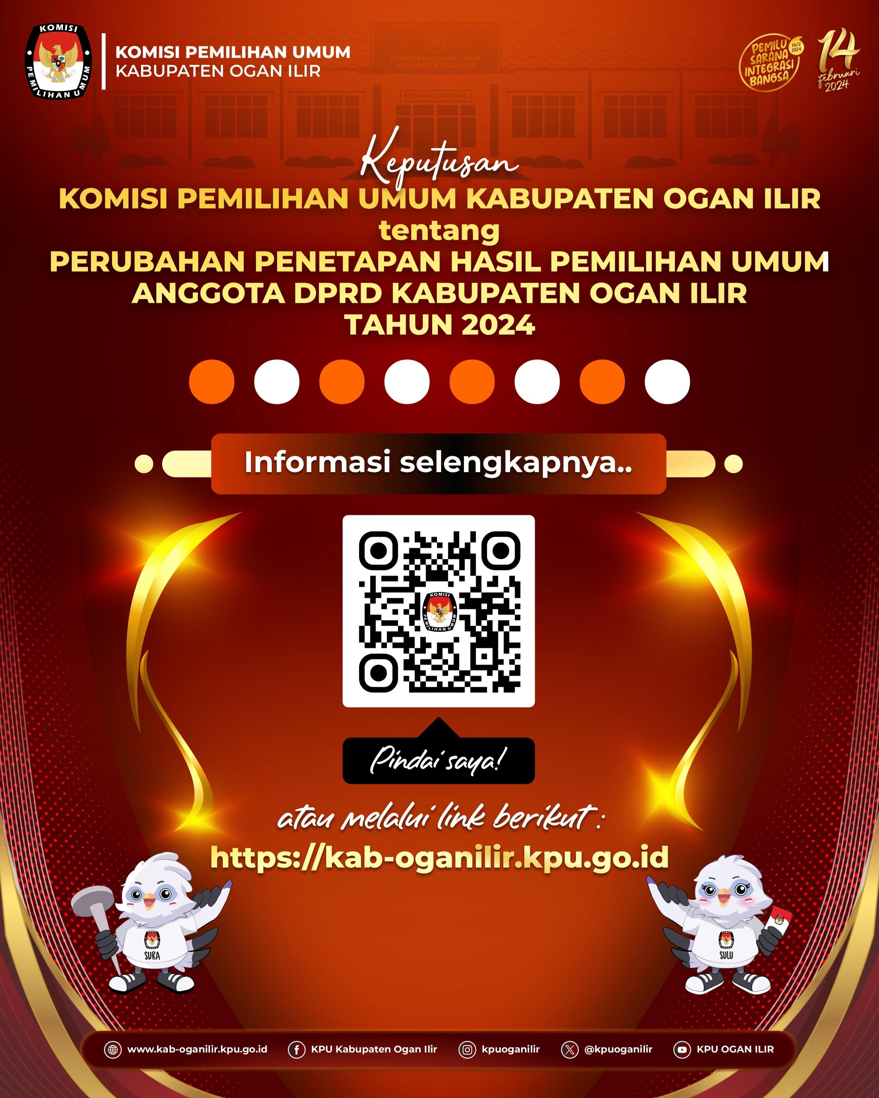 #TemanPemilih, Berikut kami sampaikan Salinan Keputusan KPU Kabupaten Ogan Ilir tentang Perubahan Penetapan Hasil Pemilihan Umum Anggota Dewan Perwakilan Rakyat Daerah Kabupaten Ogan Ilir Tahun 2024.
