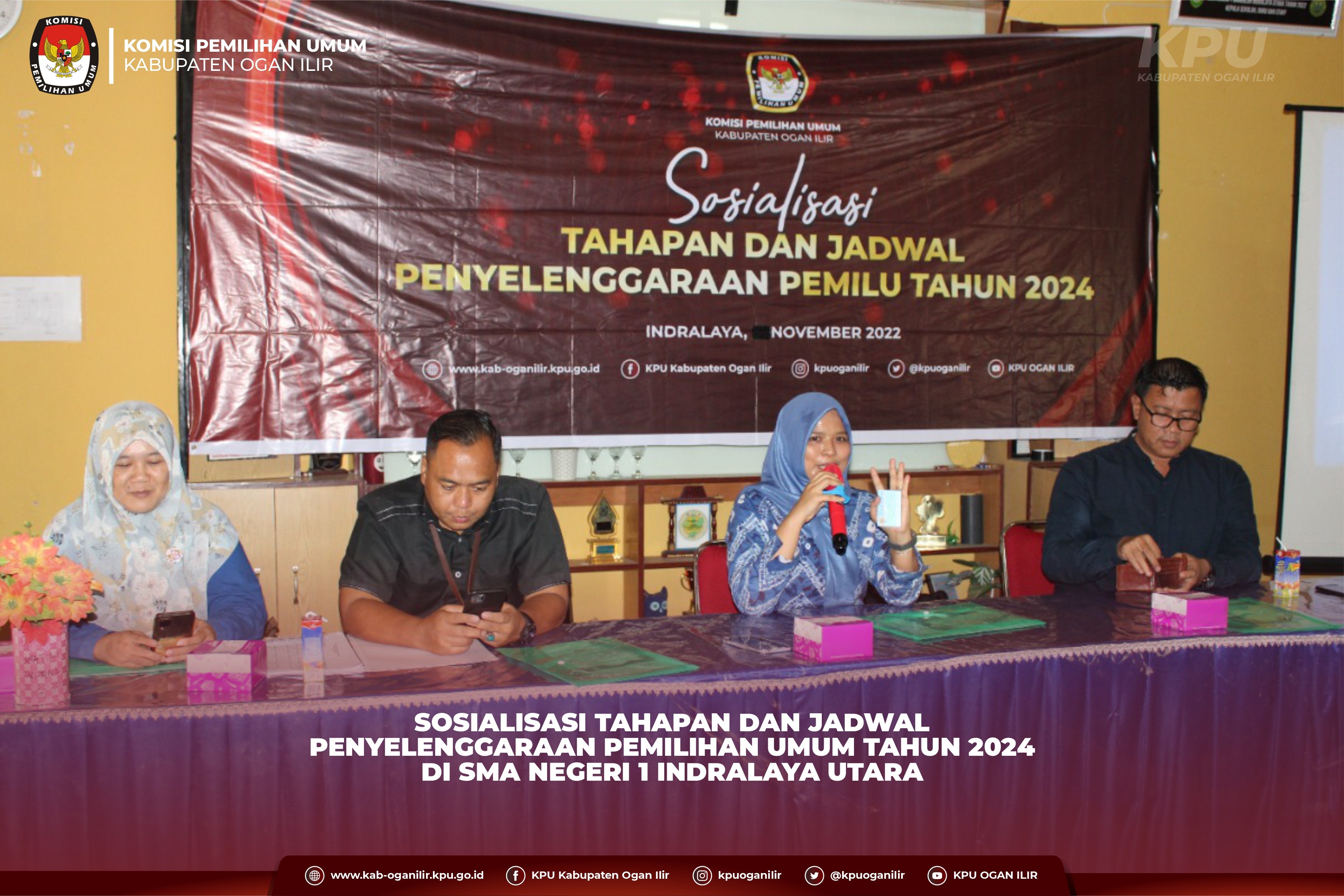 #TemanPemilih, KPU Kabupaten Ogan Ilir menggelar kegiatan Sosialisasi Tahapan dan Jadwal Penyelenggaraan Pemilihan Umum Tahun 2024 di SMA Negeri 1 Indralaya Utara, dikarenakan sosialisasi adalah bagian dari setiap tahapan pemilihan umum.