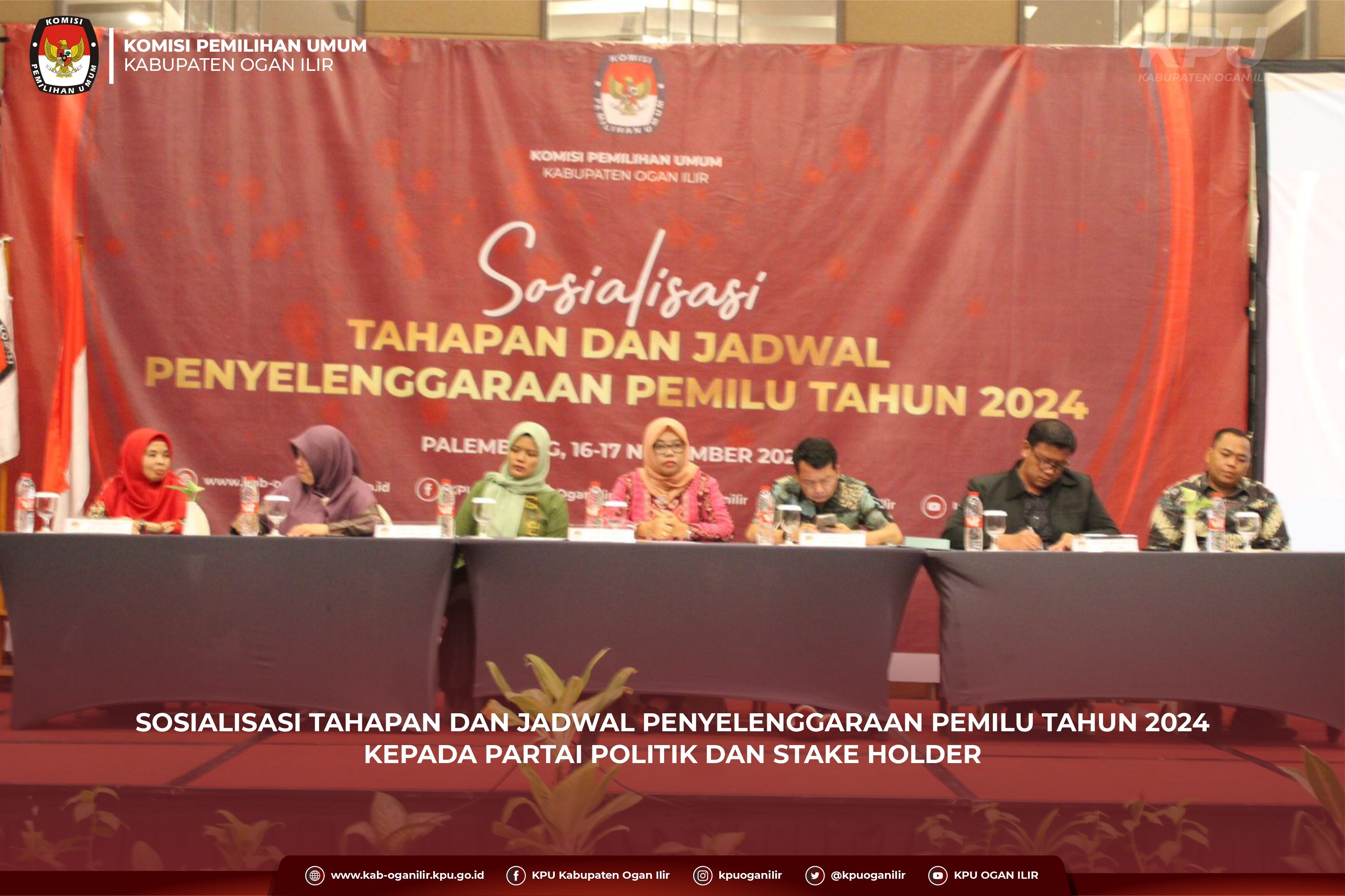 Komisi Pemilihan Umum Kabupaten Ogan Ilir menggelar Sosialisasi Tahapan dan Jadwal Penyelenggaraan Pemilu Tahun 2024 kepada seluruh Partai Politik dan sejumlah Stake Holder di Kabupaten Ogan Ilir.